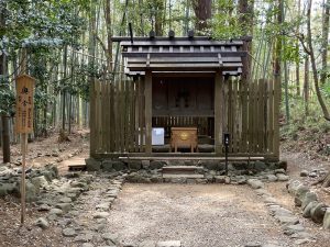奥の宮の社殿は、本宮とは異なる簡素で素朴な趣を持っています。この場所は、飾り気のない佇まいが特徴で、より直接的に神様の存在を感じられるような気がします。社殿を取り囲む木々が静けさを与え、自然の中に溶け込んだその姿はまさに「隠れた神域」といえるでしょう。