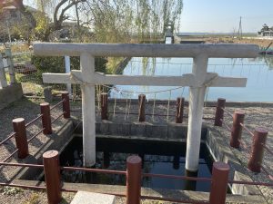 息栖神社の特徴はその静けさと荘厳さです。参道には「常陸川水門」があり、水と密接に関わる神社であることが伝わってきます。